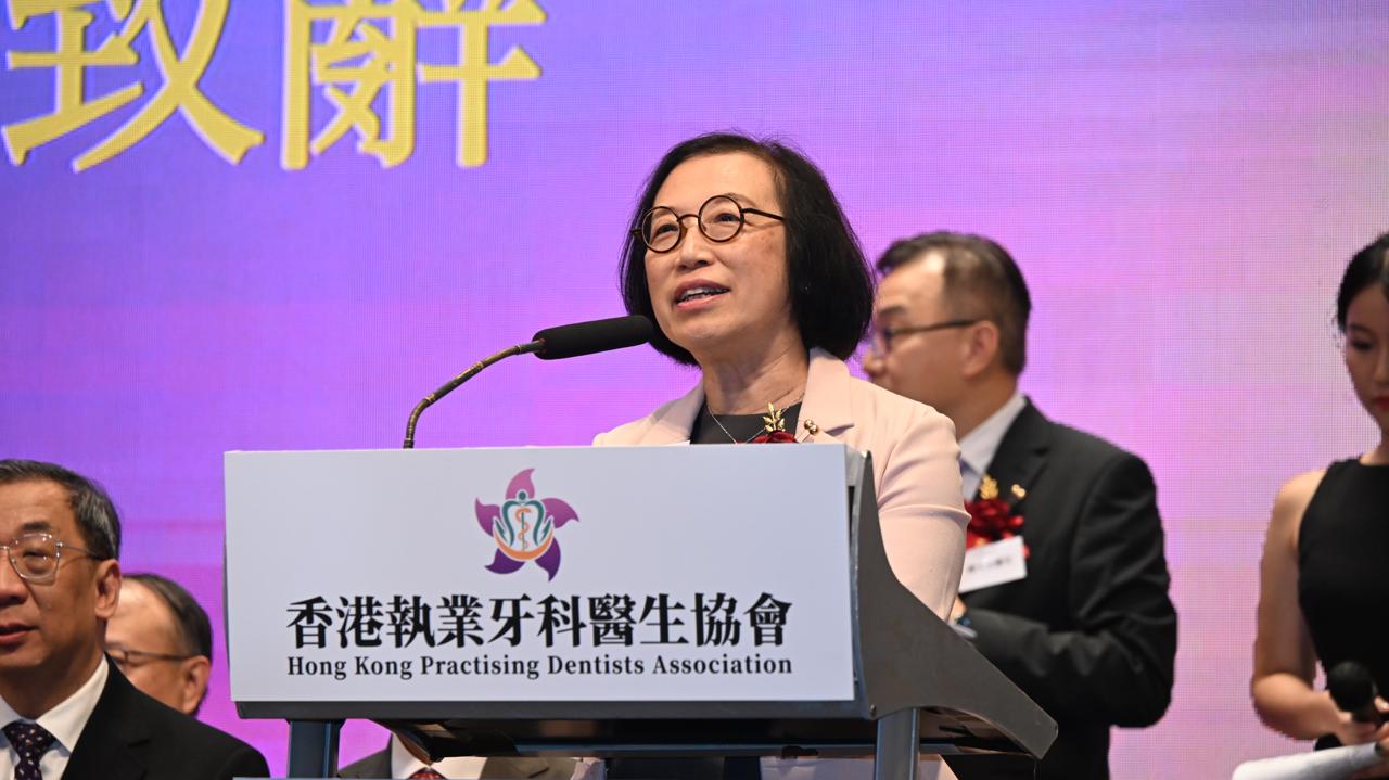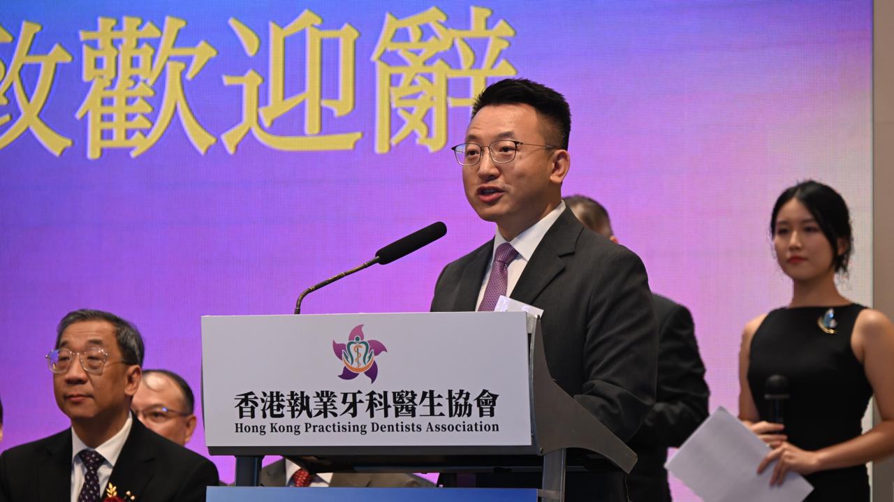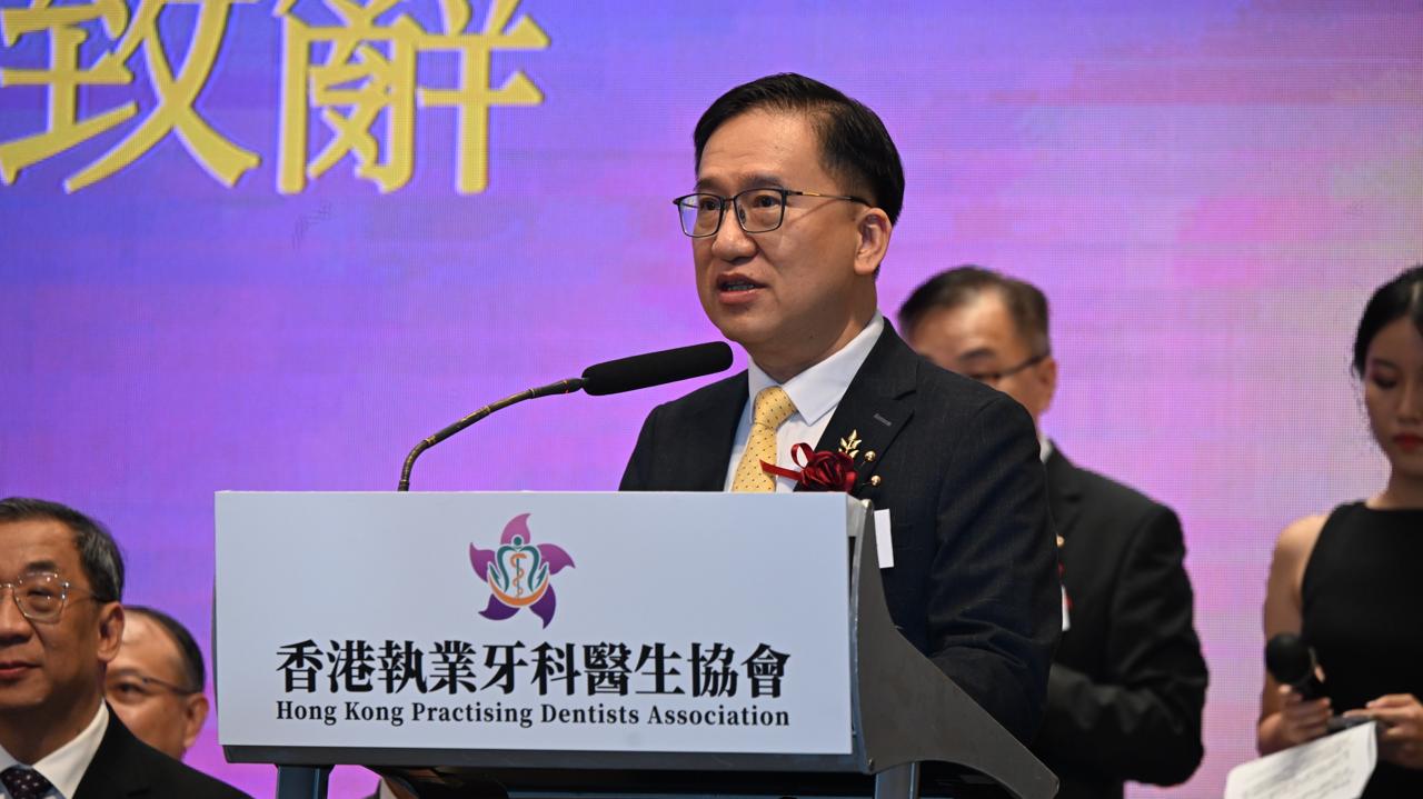 梁世民致辭時表示,對協會未來充滿期待,並提出三點願望:一是協會成為業界溝通橋樑、合作平台,凝聚共識,為香港甚至大灣區居民,提供優質牙科服務;二是推動香港與內地牙科界交流和合作,通過學術研討、技術交流,人才互動形式,促進兩地深化交流,互促共進;三是助力特區政府完善牙科政策,積極向政府提供科學、合理政策建議,認真聆聽香港市民,對口腔健康的訴求和需要。他又指,協會現時有超過三百名會員,期待為完善香港牙科醫療體系,優化牙科公共服務貢獻專業力量。