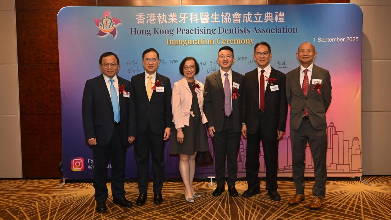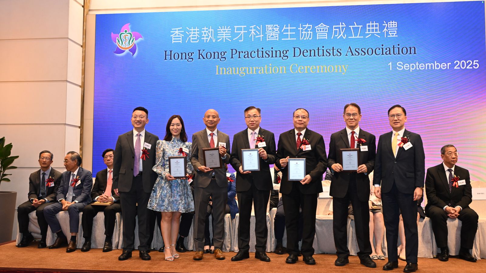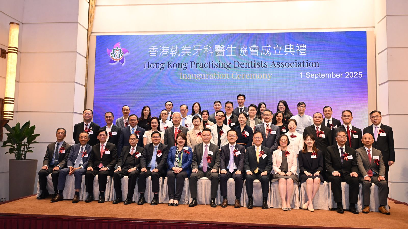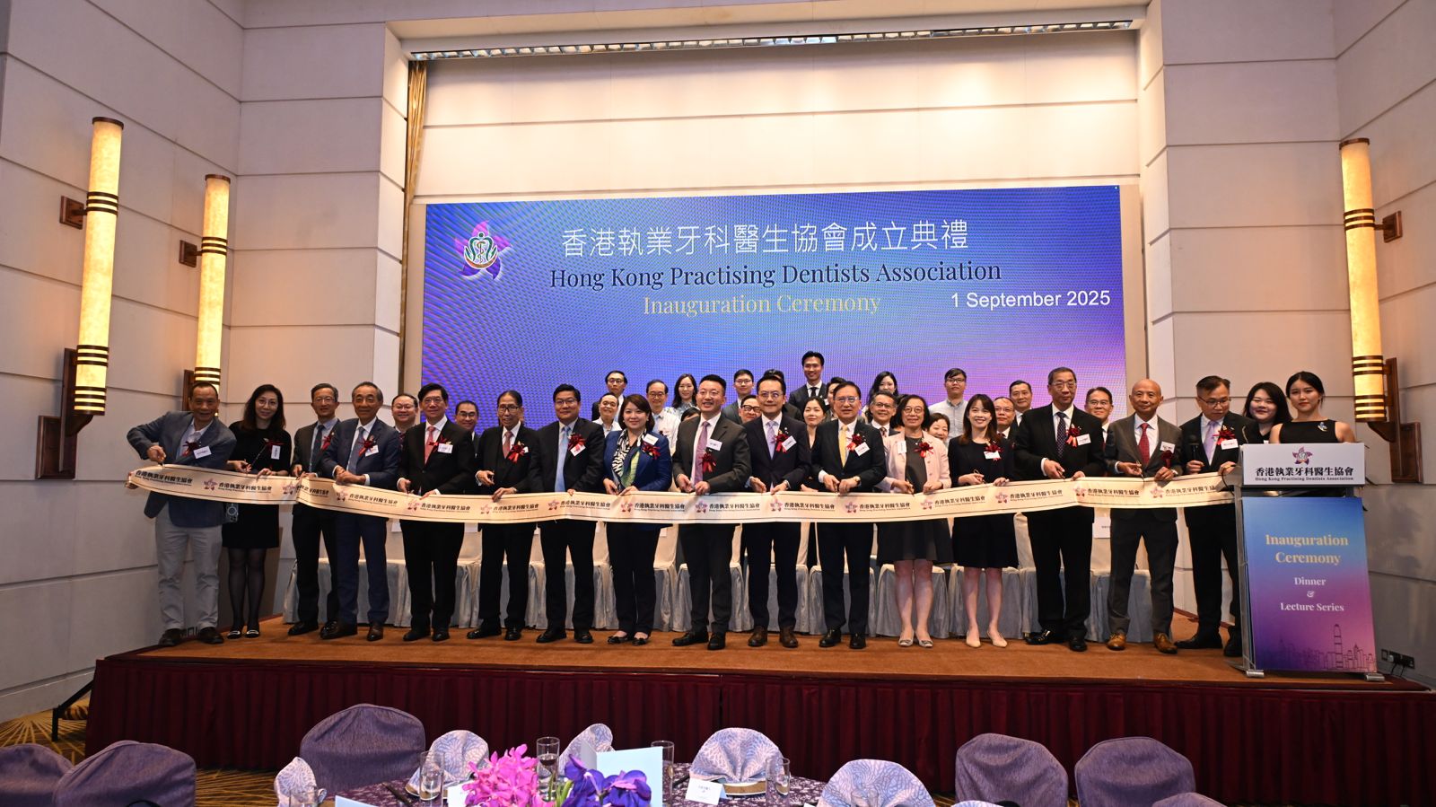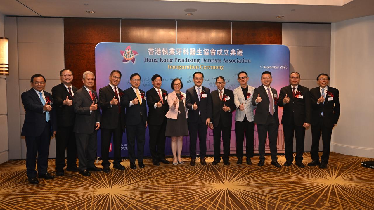 香港執業牙科醫生協會周一(1日)舉行成立典禮,協會榮譽會長梁世民,會長陳坤,協會榮譽顧問梁智鴻醫生、陳肇始教授等先後上台致辭。衞生署署長林文建、醫院管理局行政總裁李夏茵,以及中聯辦協調部副部長陳澤濤等主禮嘉賓亦到場見證。